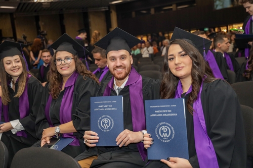 The course supervisor of the graduating class, Prof. Dr. Mariana Gabrovska, addressed words of encouragement to the young doctors, after which the graduates with the highest success rate from the graduating class – Dr. Ilkan Seidov and Dr. Julian Völler also congratulated their colleagues and received their diplomas personally from the Rector of MU-Sofia, Prof. Landzhov.